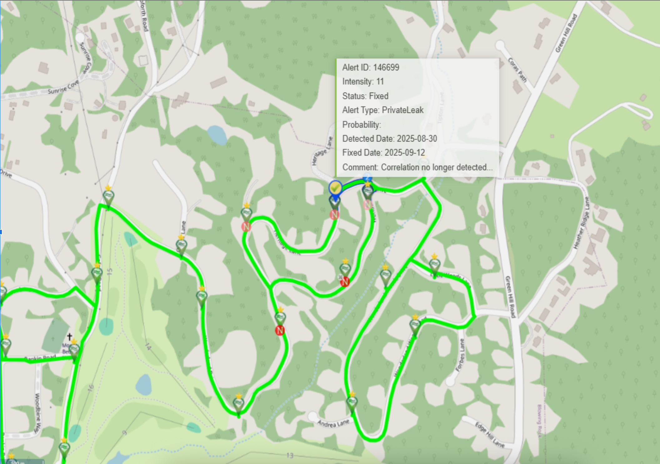 On August 19, 2025, twenty fixed acoustic leak detection sensors were installed on fire hydrants throughout the Rankin Rd/Goforth Rd and Wonderland Drive neighborhood. The AQS Customer Success team continuously analyzed and monitored the data, collaborating closely with Town personnel to prioritize field investigations. This enabled the utility to efficiently dispatch and coordinate its leak detection contractor in targeted areas, making the process both more effective and cost-efficient.